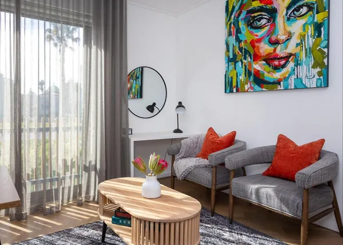 The apartment is nestled in the Milnerton district, only a few steps from the Ratanga Junction. Nine Palms 223B Apartment is 7 km from the University of Cape Town and Cape Town International airport is 19 minutes’ drive away. This accommodation is 15 minutes by car from the Old Biscuit Mill.